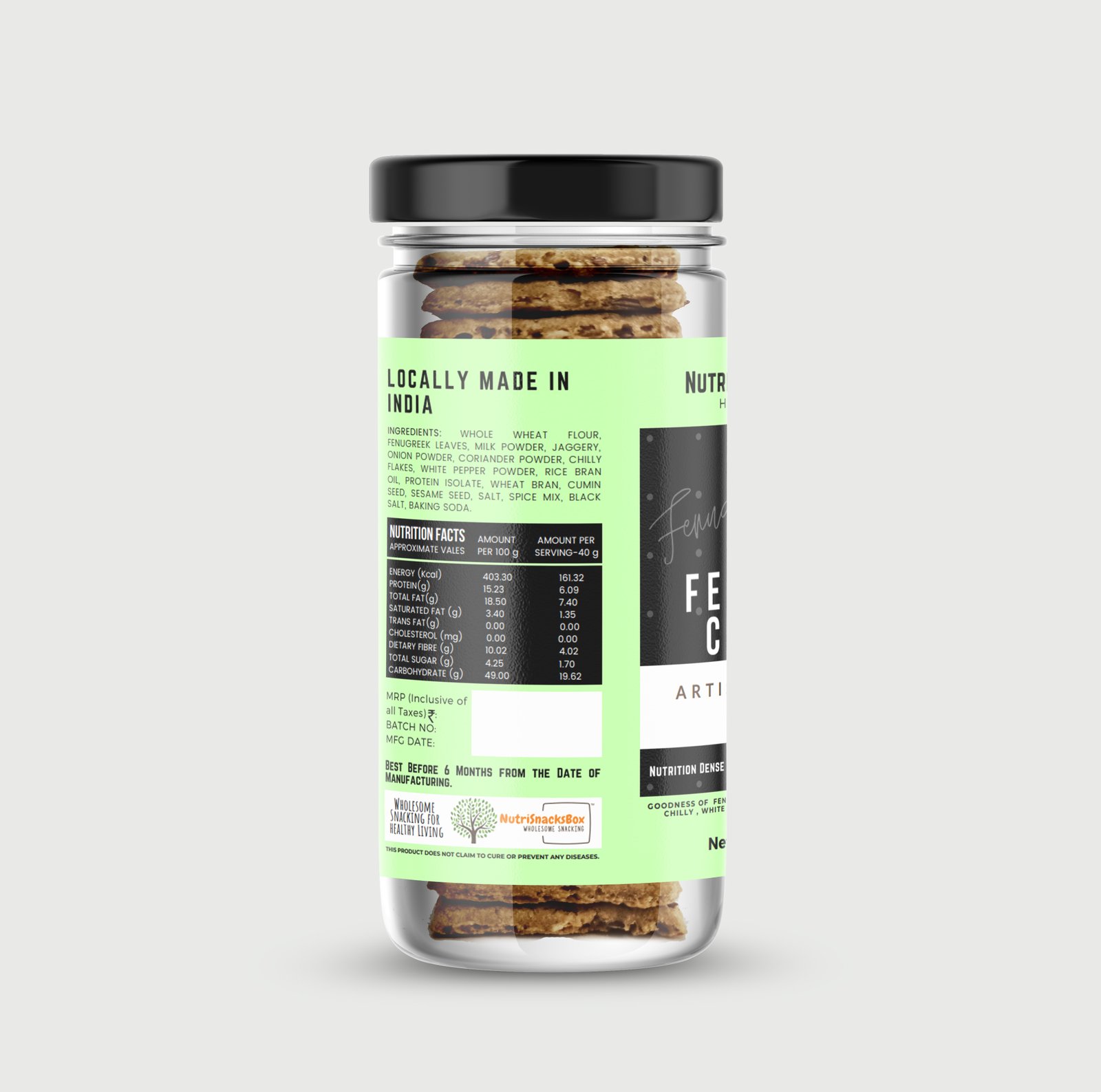 1. What is the nutritional value of 100 grams of Fenugreek Crispies?