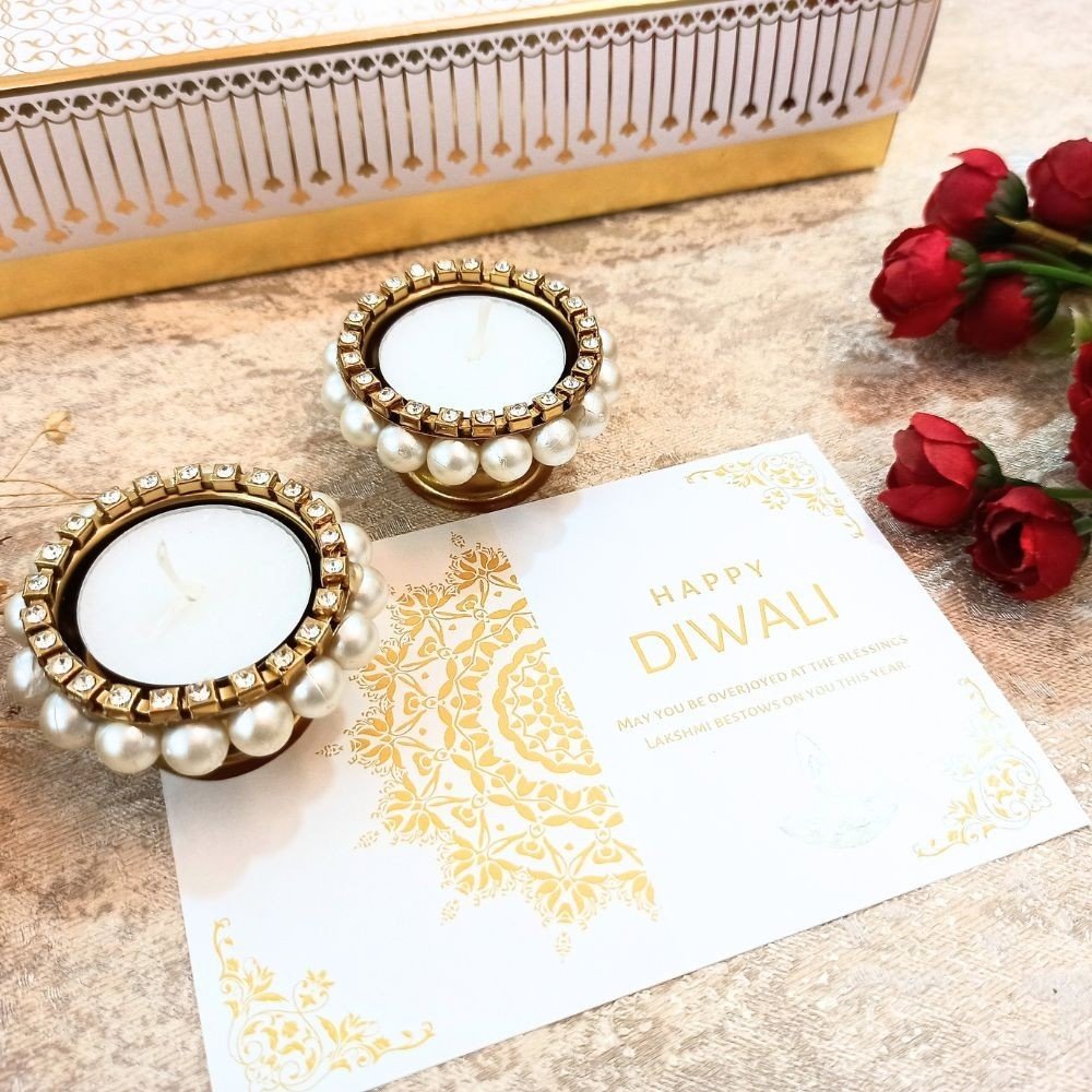 7. Premium Metal Moti stone studded Diya 2 pcs