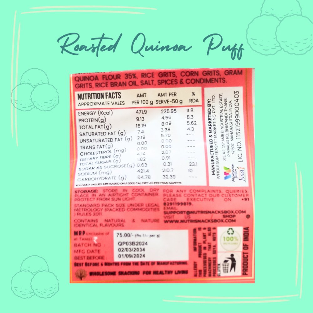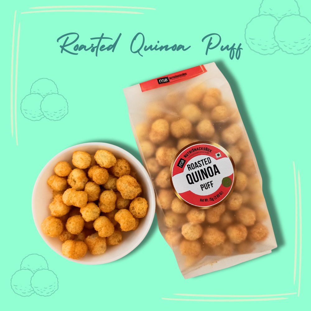 A Nutrisnacksbox Roasted quinoa puff Gluten free Puffs Highly Nutritious, Low Calorie are a healthsome snack. Enjoy the delicious taste of Soya Crispies to keep the hunger pangs at bay and for a quick energy boost.